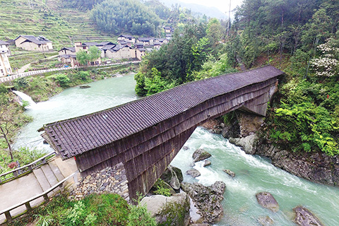 木拱廊橋亦稱「虹橋」,不要寸釘片鐵,只憑椽靠椽、桁嵌桁,銜接嚴密,結構穩固,以「河上架橋,橋上建廊,以廊護橋,橋廊一體」的古老獨特橋樑樣式,被譽為世界橋樑史上的「活化石」。二00九年十月,以閩浙為代表的「中國木拱橋傳統營造技藝」被聯合國教科文組織列入《急需保護的非物質文化遺產名錄》。