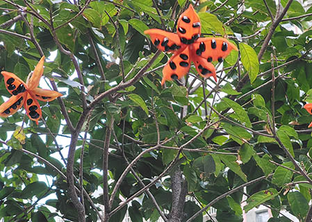 黃昏途經台山中街,街道兩旁種植了行道樹,大花紫薇開著紫色的花朵,成為美景;接近青洲坊那兒,我發現一棵樹開著紅色的、花瓣裏夾著黑褐色卵圓形種子──這是什麼樹木?