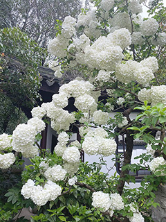 夏天我照例扦插活了數枝繡球苗,在微信朋友圈發佈認領公告,當天就「名花有主」。有個書友群的朋友,我剛好去武漢出差,約定傍晚在湯湖公園碰頭,公園位於武漢經濟技術開發區(沌口)內,緊臨車城大道,這裡栽種了紫薇、銀杏、樟樹、柞木等樹木。還有天人菊,月季,小雛菊,繡球花等花卉,是一座融旅遊觀賞與文化活動為一體的文化主題公園,公園內湖面開闊,波光粼粼,水天一色。我們散步聊天兩不誤,我說我穿黑白條紋襯衫,她說她藍白條紋連衣裙,我們好像間諜接頭。哪曉得,她居然給我也帶了一些不同種類的繡球——原產地美國的櫟葉繡球,日本稱為柏葉紫楊花,如此實現了古老的物物交換。我接過新的學習任務,爭取盡力養好其他種類繡球。