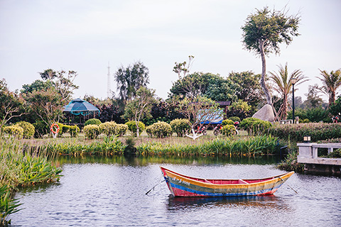 【中新社莆田六月二十四日電】(中新社記者 龍敏)湖光瀲灩,魚遊蝦嬉,白鷺群飛,岸綠景美,棧橋相連。盛夏時節,走進福建省莆田市湄洲島湖石淉生態園,風車、水車、涼亭、網紅咖啡店點綴其間、逸趣橫生……
