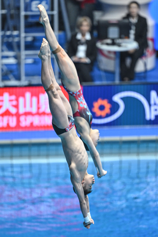 【中新社日本福岡7月15日電】(記者郝淩宇)中國跳水「夢之隊」15日在日本福岡包攬了2023年游泳世錦賽首個金牌日產生的3枚跳水項目金牌。王飛龍/張家齊在混雙10米台決賽中為中國隊摘得本屆世錦賽首金,林珊、王宗源/龍道一組合分別在女子單人1米板和男子雙人3米板決賽中奪冠。