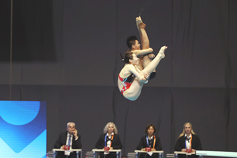 跳水混合團體賽需要四位選手在比賽中完成男女單人3米板、男女單人10米台、混雙3米板、混雙10米台的跳水動作。中國跳水隊展現「夢之隊」實力,領先第二名墨西哥隊34.30分將冠軍收入囊中,德國隊獲得第三名。