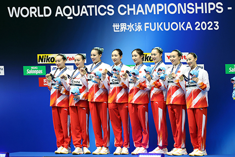 在花游集體自由自選決賽中,預賽排名第一的中國隊發揮出最好水平,所有難度動作都得到認定,以329.1687分奪冠。日本隊和烏克蘭隊分獲銀牌和銅牌。