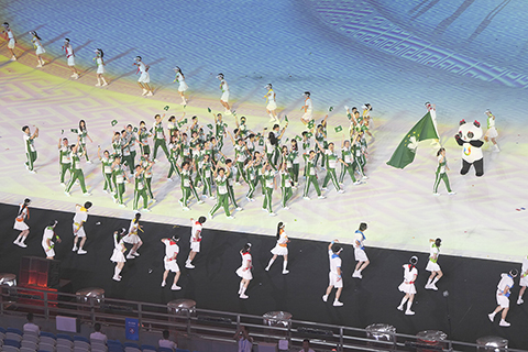 開幕式上,中國大學生體育代表團有530多名運動員及官員參加入場儀式,網球運動員郭涵煜(女,西南大學)、排球運動員胡朕卓(男,清華大學)擔任國家隊旗手。