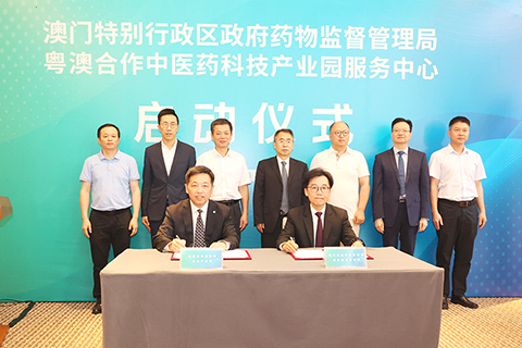 【特訊】「澳門特別行政區政府藥物監督管理局粵澳合作中醫藥科技產業園服務中心」啟動儀式暨大灣區中醫藥政策與技術會議昨天在粵澳合作中醫藥科技產業園(下稱「產業園」)舉行。啟動儀式上,澳門藥物監督管理局(下稱「澳門藥監局」)與產業園共同簽署《加快推進粵澳合作中醫藥科技產業園建設發展的合作備忘錄》,同時澳門藥監局在產業園設立的「澳門藥物監督管理局產業園服務中心」(下稱「服務中心」)正式啟動運行。