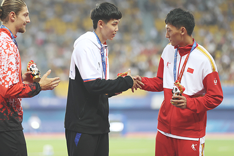 另一名國家隊泳手覃海洋,在男子200米蛙泳,遊出2分8秒09、打破賽會紀錄奪得冠軍,亦是他在今屆大運會的第3面金牌。