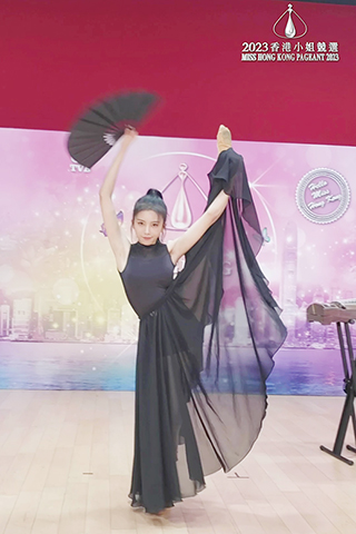 鄧凱文(Eris)及姜依宁(Jenny)則不約而同以性感舞蹈展現實力,當中以Eris的椅子舞較有驚喜,腳踏高跟鞋上陣的Eris,一雙修長美腿及美好身段甚是搶焦,但令人更深刻的是,努力擠出女人味的Eris表演期間一度忍不住傻笑,雖然有點甩碌,但可愛度爆燈。眾多表演跳舞佳麗中,以梁倩淇(Debbie)最有創意,大跳Roller扇子舞的她,單是一頭長直髮及甜美笑容已盡顯仙氣;整個表演Debbie還展現了驚人的平衡力、腰力及腳骨力,就算單腳踩住roller兼要應付超大把扇子亦遊刃有餘,最終的一字馬結尾動作亦十分俐落,舞得出色。