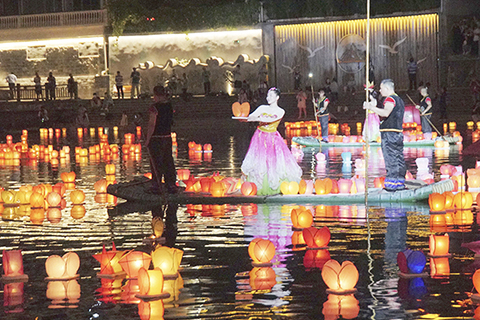 疑是「銀河」落人間 中元節桂萬盞河燈耀資江