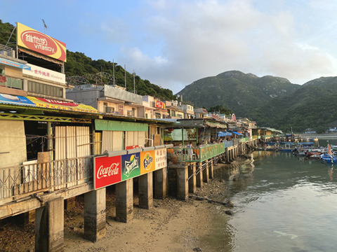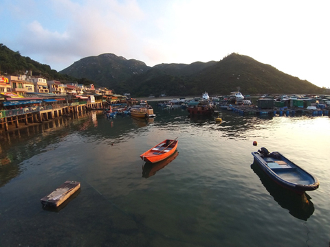 離開神風洞,我們向索罟灣方向進發,那時日落的餘暉已經伴隨著我們踏上歸途了。在索罟灣碼頭一帶,眾多的漁排漂浮在港灣上,到處瀰漫著漁鄉風情。索罟灣的恬靜樸素,雖然不比另一端榕樹灣的熱鬧,但海灣沿岸的粵菜海鮮酒家成行成市,依然吸引了不少老饕慕名而至。那裡還有很多售賣本地漁民曬製的海味特產和乾貨的小店舖,遊客也樂意買些地道手信帶回家的。沿著前往索罟灣碼頭的道路,我們乘船離開。