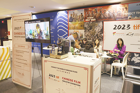 當地時間九月七日,加拿大多倫多,第四十八屆多倫多國際電影節啟幕。作為該電影節行業交流活動之一的第五屆「中國電影展」同步啟動。圖為「中國電影展」展區。