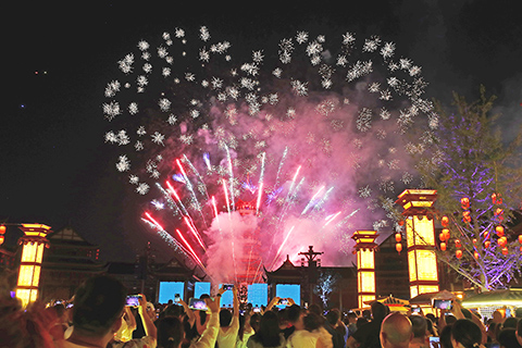 丙午年黃帝故里拜祖大典在豫新鄭舉行 重慶酉陽龔灘古鎮遊覽 台慢車酒駕件數增六成四警署擬建議修法防制 穀雨:山海之間春意濃 江西鷹潭方特東方神畫主題樂園開園迎客 2023-09-11 03:30:00 ◎ 九月九日,江西鷹潭方特東方神畫主題樂園開園迎客。當晚,萬枚煙花夜幕綻放,一千五百架無人機空中齊飛,以天為幕,以光為筆,上演了一場夢幻的夜光幻影秀和璀璨煙花秀,吸引眾多遊客駐足欣賞。圖為遊客用手機拍攝空中綻放的煙花。(中新社記者 劉佔昆 攝)