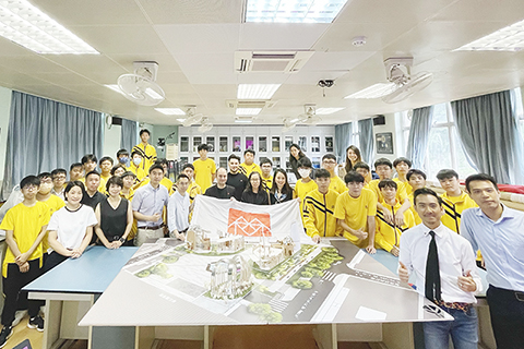 而「走進校園」第二部份的互動工作坊則於九月十六日上午於粵華中學啓動並圓满结束。是次工作坊則由澳門建築師協會十一位青年建築師理監事及會員组成的導師團隊帶領,工作坊由策劃人林立仁先向同學作講解;之後共三十六位學生分為五個小組,各由兩位青年建築師導師帶領,以一個鄰近粵華中學的真實地段為藍本,引導學生在地段上設計建築物,並以環保物料按設計興建建築物。學生們對這個具創意的活動興趣雀躍、積極投入,而在導師的啟發下發揮了他們的建築設計創意,每小組學生們亦為自己的建築設計成品提名及作簡介,活動由澳門建築師協會理事長蔡韻璇、副理事長鄔劍琴及粵華中學升學及生涯規劃组组長張子傑老師勉勵同學作終結,而參與是次活動的亦包括粵華中學龔抗行副校長。◇
