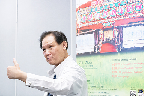 【中新社記者韓星童】香港八和會館理事會主席、粵劇演員龍貫天的到來,是不見其人,先聞其聲。走廊裡聚集的戲迷發出陣陣歡呼過後,他推開門,與等候著的眾人點點頭,坐到那張「太平處處是優場」的海報前,接受中新社記者專訪。