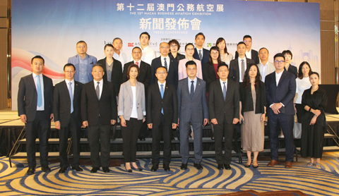 主、協、承辦單位昨(九月二十五)日下午假澳門新濠影滙宴會廳舉行新聞發佈會,出席者包括:澳門貿易投資促進局执行委员李藻森,澳門會議展覽業協會會長、南光(集團)有限公司副總經理宋曉冬,新濠博亞娛樂有限公司董事鍾玉文,南光文化創意產業有限公司總經理朱耘,澳門國際機場專營股份有限公司物流暨通用航空發展部副總監唐瑤,TAG Aviation澳門FBO總經理譚淑敏,南光國際會議展覽有限公司副總經理周晉陽,以及来自新加坡、香港及内地各公務機製造商、運營商、行業協會等業内嘉賓約四十人。