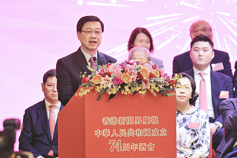 【香港中通社九月二十八日電】(記者 陳偉根)九月二十八日,香港新聞界舉行慶祝中華人民共和國成立七十四周年酒會。香港特區行政長官李家超及特區政府官員、中央駐港機構代表、社會各界翹楚及新聞界人士等逾三百人出席。