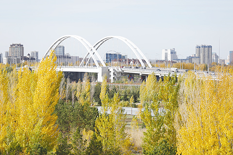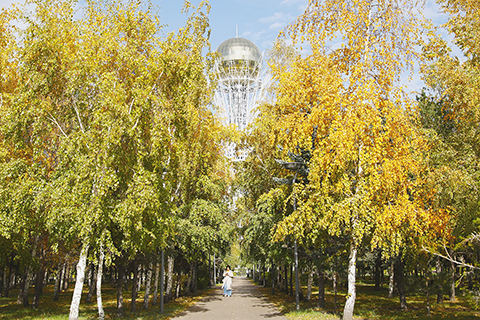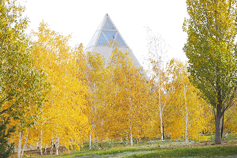 近日,哈薩克斯坦首都阿斯塔納進入金秋時節。◇ 新華社發 奧斯潘諾夫 攝