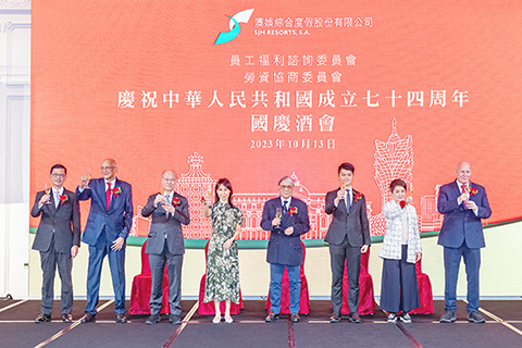 【特訊】澳娛綜合度假股份有限公司(「澳娛綜合」)聯同澳娛綜合員工福利諮詢委員會(「福諮會」)、澳娛綜合勞資協商委員會昨天假澳門上葡京綜合度假村(「上葡京」)上葡京禮堂,舉行慶祝中華人民共和國成立七十四周年國慶酒會。澳娛綜合董事局主席霍震霆、澳娛綜合常務董事何超鳳、澳娛綜合勞資協商委員會顧問代表黃景禧律師、董事蘇樹輝、董事兼福諮會主席梁安琪,以及兩場合計約二千八百名員工出席國慶酒會,向祖國送上摯誠祝福。為方便員工的上班時間,酒會分中午及下午兩場舉行,亦把酒會內容剪輯成短片在公司後勤區域播放,讓更多員工可以感受喜悅。