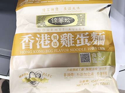 涉事預包裝產品為「香港製造雞蛋味麵」,品牌「錦華坊」,淨重454克,產地為香港,涉事批次的此日期前最佳為2025年8月15日。該樣本被檢出防腐劑二氧化硫含量為百萬分之六十一,超出當地標準及本澳第7/2019號行政法規《食品中防腐劑及抗氧化劑使用標準》之規定。