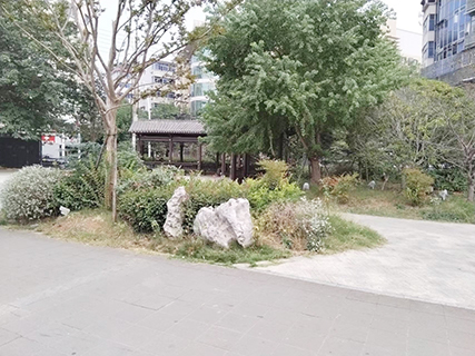 相較於象山路上的其他地方,這裡變化最為明顯。在象山、孺子兩路交界處的東側,有一小片被三條馬路包圍的土地。十多年前,這裡建了幢小樓,有飯館,有KTV。現在小樓成了花園,左側是長亭,右側是小亭,兩座亭子均被花朵、草坪、樹木環繞。一簇簇花草高高低低,錯落有致。在周遭鱗次櫛比的樓房襯托下,這花園猶顯清新迷人。