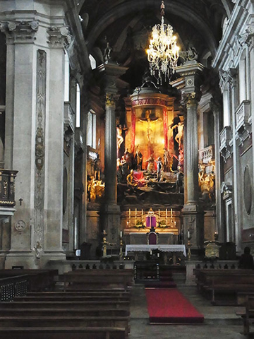 梯頂的教堂稱仁慈耶穌修道院,在海拔四百米的懸崖絕壁,遺世獨立,雄偉突兀,古樸蒼涼,院內的祭壇,展現刻劃了耶穌受難的現實場景,院外的小廣場,塑立八個行刑軍旅的雕像,環繞綠杉、花圃、樓台、亭閣,互相輝映,寧謐清幽。