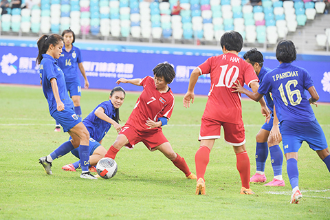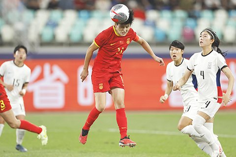 比賽開始,中國女足利用高位逼搶限制韓國女足出球空間,給對方後防造成不小威脅。第20分鐘,烏日古木拉接隊友長傳攻破韓國隊大門,但因參與進攻的吳澄舒越位在先被判進球無效。上半場補時階段,韓國老將池笑然一腳遠射命中球門立柱,中國女足逃過一劫。