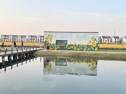 安亭鎮的文藝生活如窗戶明亮通透,坐在窗邊閱讀的人品著咖啡,神態安詳。旁邊沒幾步就是向陽村的稻田,秋收的稻田進入成熟季,因飽滿而低垂的稻穗,百畝稻田彙聚金黃色的畫板。秋風吹拂起伏,隔些日子就要收割,人們卻悠閒地享受週末。孩子們在木板鋪的便道上奔跑追逐,住著貓狗,歡聲笑語。騎車的年輕人一前一後,秋風傳情。
