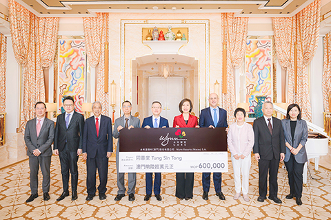 【特訊】永利一直秉持發揚善心的企業精神,積極支持及參與本澳各項社區和公益活動。永利不但繼續響應澳門同善堂一年一度的「沿門勸捐」籌款活動,捐贈澳門幣六十萬元,並加上雙方早前合作研製的慈善菜品「福有『油雞』」所籌得的澳門幣十八萬元善款,今年合共捐贈澳門幣七十八萬元,以支持該機構的各項慈善公益及扶貧事業,務求讓更多不同界別人士受惠。