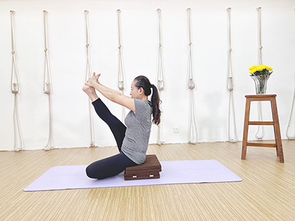 這個體式可以作為半英雄前屈伸展式的延伸練習,練習這個體式時要比背部前屈曲伸展式稍為困難,因此它的功效也在於使腿部獲得完全充份的伸展,讓腿部肌肉得到了很好的鍛鍊。◇