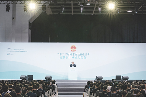香港特區行政長官李家超出席座談會並發表致辭。他表示,憲法和香港基本法共同構成的香港特區憲制秩序為香港的國際化優勢提供了基礎和保障。他還就維護中央全面管治權和保障香港特區的高度自治權,以鞏固香港繁榮安定作三點分享:要守護好管治權,就必須堅決落實「愛國者治港」;必須培養愛國新一代,使他們成為心繫國家、具世界視野、有能力、能擔當香港「一國兩制」發展和國家現代化建設的接班人;必須完善維護國家安全法律制度和執行機制。