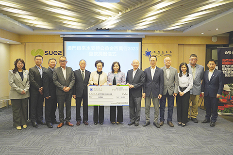 十二月四日假青洲水廠行政大樓舉行捐贈儀式,執行董事關小冰向澳門日報讀者公益基金會致送五萬澳門元善款,並由會長賀定一代表接收。澳門日報讀者公益基金會副會長陸波、飛安達、理事長黃國勝、副理事長崔家榮、李廣志、梁永佳,澳門自來水副總經理朱偉文、王榮集、李志土、財務總監何美儀等出席儀式。
