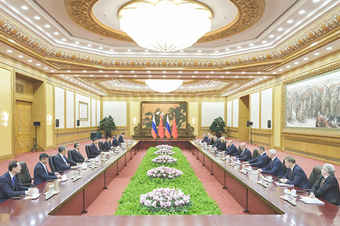 習近平指出,今年以來,我同普京總統兩次會晤,兩國政府、立法機構、政黨、地方開展密切交往,各領域務實合作健康穩定發展。今年前十一個月,中俄雙邊貿易提前實現了我同普京總統共同制定的年貿易額二千億美元目標,展現出兩國互利合作的強大韌性和廣闊前景。維護好、發展好中俄關係,是雙方基於兩國人民根本利益作出的戰略選擇。中方支持俄羅斯人民走自主選擇的發展道路。中方願同俄方以明年中俄建交七十五周年為新起點,不斷放大兩國高水平政治關係的積極效應,在全面推進各自經濟社會發展、實現民族復興的進程中繼續攜手前行。
