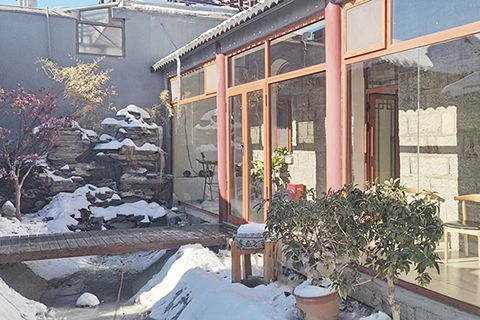 一套由石窯改建的民宿,此前因戶主另蓋新房閑置已久。院內有橋有樹,積雪尚未全部融化。屋檐下的冰柱正向下滴水,窗檯上的小花長勢喜人。改造後的小院,有五間臥室,佈置簡約卻不失農村特色,價格為數千元(人民幣,下同)一天。