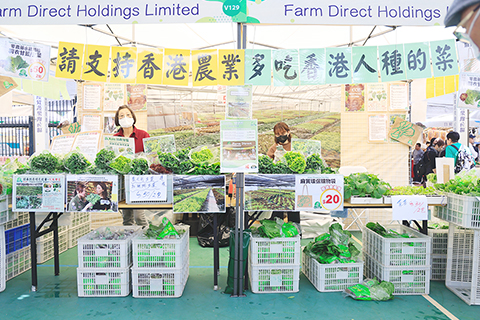 永霖花園有限公司經營著一家水耕菜場,其攤位上展出了水耕生菜、甘藍等。不少市民被水耕菜吸引,向攤主了解不同菜品的營養價值和烹飪方法。該公司負責人許俊義表示,香港適宜耕種的土地較少,水耕屬無土栽培,可以避免土地、環境對蔬菜產量和產出速度的影響,能提供較為穩定的蔬菜供應。