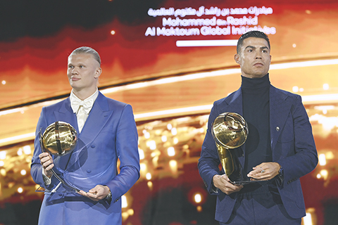【特訊】每年一度的阿聯酋杜拜舉行的環球足球頒獎禮,早前失落世界足球先生榮譽的曼城前鋒艾寧夏蘭特,獲得2023年度最佳男子球員殊榮,成為「世一」,但都被C朗搶了風頭,因為這位即將39歲的葡萄牙球星上演「帽子戲法」,奪得最佳中東球員、年度最佳射手、最受球迷歡迎獎,更加霸氣說擊敗年輕當打的夏蘭特,成為2023年入球王,感到非常自豪。