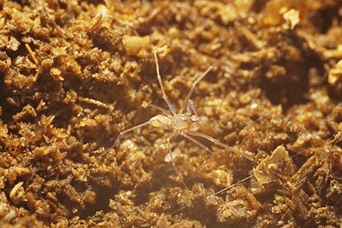弱蛛科蜘蛛,個體微小,多數種類6眼,少數類群眼睛退化為4眼、2眼甚至無眼,常棲息在洞穴中、潮濕石塊下及枯枝落葉層下,以蛛絲在枯葉下、石頭下或洞穴縫隙中做囊巢,捕食小型節肢動物。