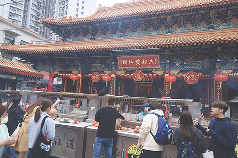 春節雖未至,黃大仙祠內已煙火裊裊,不少市民遊客手持點燃的多炷香,高舉過首一連數拜,祈福來年吉祥如意。遊客張小姐與男友在祠外花十港元買了一把香,笑稱「今天不上班了,改上香」,並打算沿祠內的上香路線一路拜過去,不求實現願望,只求一個心安。
