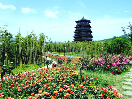 無論遠觀還是近看,縱橫樓都是最惹眼的。名曰「縱橫樓」,實則為一座高塔,樓名為著名作家賈平凹先生題寫,筆力遒勁,揮灑自如,大多數遊客都會在這裡駐足欣賞一番。塔高數十米,站在塔下仰視,有直插雲霄之感。高塔倒映在水中,二者相映成趣,頗有天空之鏡的韻味。時而風起,倩影隨風蕩漾,影影綽綽,若隱若現,別有一番意境。