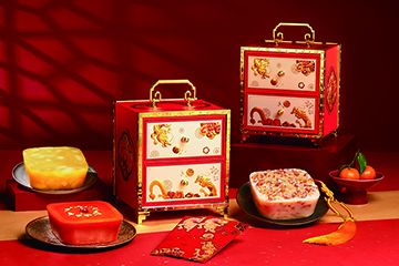 魚躍「龍」門,步步「糕」陞,懷著對新一年的美好憧憬,永利推出四款精美賀年糕點。年糕禮盒創新採用珠寶方盒的設計,以中國紅為主色調,配合點綴其間的金色提手和邊框細節,顯得雍容大氣且洋溢著農曆新年特有的喜慶氛圍。兩條氣勢磅薄的金色福龍環繞著永利標誌性的花卉圖騰在禮盒上「騰飛」,以慶祝即將到來的甲辰龍年,傳遞「龍騰萬里」、「花開富貴」的新春祝福。新年過後禮盒還可用作日常首飾收納盒,兼具美觀與實用性。