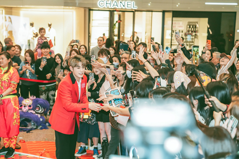 大年初六是開工及開巿的大吉日,銅鑼灣時代廣場邀得去年由年頭旺到年尾的「零死角男神」魏浚笙(Jeffrey),為《金龍醒獅賀新歲》慶典加持,讓大家的旺氣繼續延至龍年,行運一條龍!身為「娛樂圈幸運星」的Jeffrey,去年橫掃多個樂壇新人獎,在劇集及電影均有亮眼表現,更連續兩年演出賀歲片,人氣高企,吸引不少途人駐足圍觀,喜氣洋洋!人紅自然紅光滿面,只見Jeffrey主持「金龍醒獅點睛儀式」時信心十足,金筆一揮便為金龍注入滿滿的「龍氣」,同時祝福大家龍馬精神、龍精虎猛!