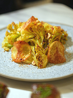 這個年頭,「晚上不吃米飯」已經成為了最流行的口頭禪之一,以下這款主菜明顯是向無飯人士致敬,份量龐大的椰菜花扒充滿飽足感,以康堤芝士入饌,經烤焗後,浮現出蔬菜不應該存在的滋味。