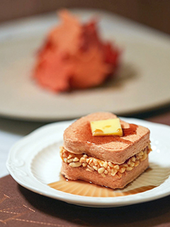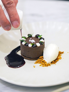 小巧玲瓏的朱古力蛋糕密度極高,非常濃厚,巧妙地配上希臘乳酪雪糕及意大利陳醋,以微酸力壓膩感!