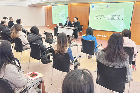 是次講座旨在提高澳門高等教育機構的國家安全教育水平。出席的曾翔顧問結合實際事例,深入淺出地講解國家安全的重要性和澳門特區《維護國家安全法》的基本知識,加強教職員的國家觀念並讓教職員了解維護國家安全的重要性、責任和擔當,讓國家安全觀念深植校園。