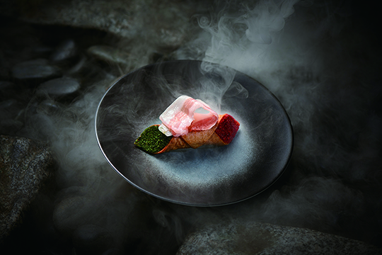 「新濠風尚」呈獻:黑珍珠鑽級餐廳巡宴的「第七章:意日鑽鋒薈」選址新濠鋒的意式海鮮扒房奧羅拉,於五月四及五日由奧羅拉總廚Safa Rodas及北京黑珍珠一鑽意日融合餐廳Amico BJ的創立人兼主廚郭強聯乘呈奉。