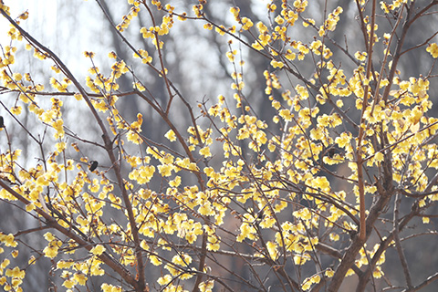 進入西安大明宮遺址公園,就有滿面的暖風吹來,猛嗅,濃香襲來,還沒見到蠟梅,就有花香撲懷。