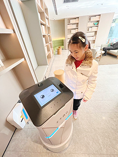 最近春節我和兒子出去旅遊,見識了很多人工智能的高科技。我們在福州全季酒店入住時,深夜吹風機壞了用不了,向前台打電話索要,機器人送到。我們入住時,在電梯口就已經遇到這個胖嘟嘟的機器人,我說:「Hello進來呀!」它不吭聲。直到我說打劫,它扭頭就走,摔倒。我趕緊給它扶起,它進電梯,一定要站C位。我故意擋前面,它奶聲奶氣地說:「哎呀,不要擋我的路,人家在工作呢!」電梯門一開,它就跟我搶著出電梯。它剛出電梯門,兩個機器人相遇,彼此都在說讓,我有點胖!你胖你有理唄?霸道的「小可愛」們互不相讓,誰也走不了、摔倒了。作為人類,我看得幸災樂禍,可以說智能酒店是現在重要的發展趨勢。