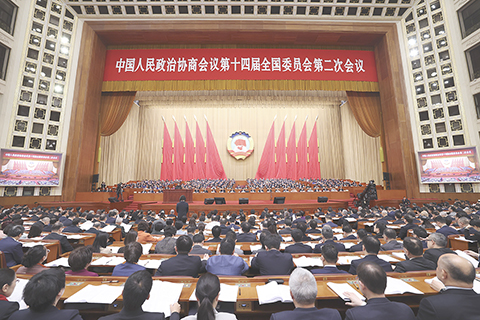 【新華社北京三月九日電】全國政協十四屆二次會議九日上午在人民大會堂舉行第三次全體會議。中共中央政治局常委、全國政協主席王滬寧出席會議。十四位委員作大會發言。