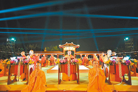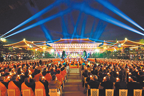 入夜後的成佛大道上,僧信點亮一盞盞祝禱的心燈,虔誠祈願、與佛相應,領受佛法的無邊浩瀚。現場播放大師讀誦〈獻燈祈願文〉影片,祈願大眾點亮心燈,照亮迷濛的人心。大師鼓勵大眾將心燈化為無盡的火炬,燈燈相映;祈求佛陀慈光加被,讓大眾都能早日點亮心靈明燈,燈燈相續。