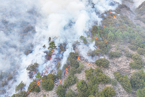 據了解,火場地形為山地地形,火場平均海拔二千六百米,坡度七十度至八十度,植被以青岡林和松樹為主。◇