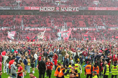 賽後,激動的利華古遜球迷紛紛衝進球場內,和球員一同高歌慶祝隊史首個德甲冠軍,球場成了紅黑色的海洋。