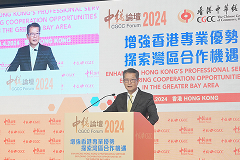 香港中華總商會會長蔡冠深致辭表示,香港作為大灣區中心城市之一,必須用好金融、創科、專業服務等各項範疇的獨特優勢,發揮「引進來、走出去」的雙向平台角色,與其他大灣區城市協同合作,扮演國家推動新質生產力發展的排頭兵。